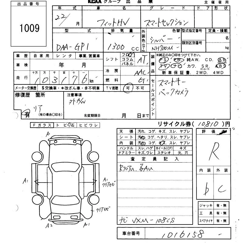 HONDA FIT HYBRID 2010 г., лот № 1009