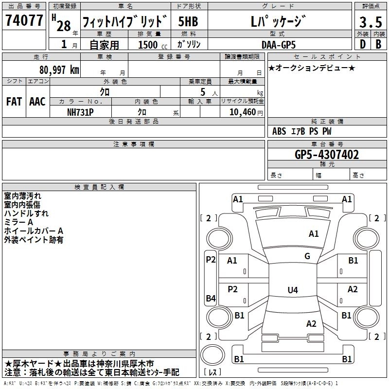 HONDA FIT HYBRID 2016 г., лот № 74077