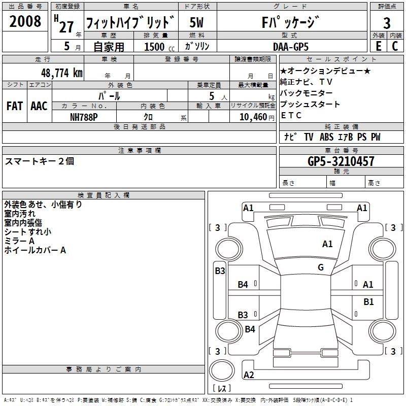 HONDA FIT HYBRID 2015 г., лот № 2008