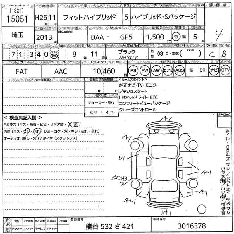 HONDA FIT HYBRID 2013 г., лот № 15051
