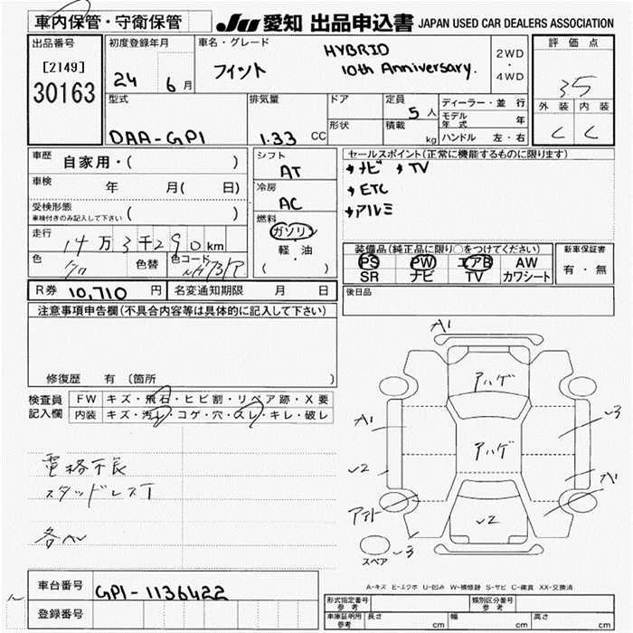 Статус выставлен на аукцион Лот 30163 Аукцион JU Aichi Дата аукциона 12.03.2026