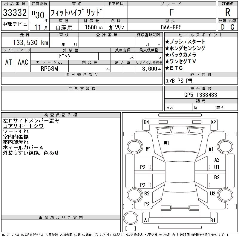 HONDA FIT HYBRID 2018 г., лот № 33332