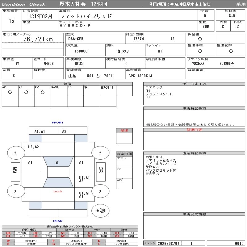 HONDA FIT HYBRID 2019 г., лот № 15