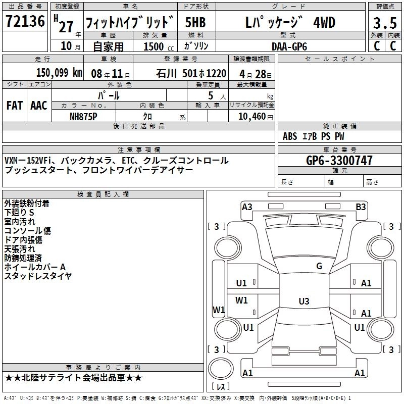 HONDA FIT HYBRID 2015 г., лот № 72136