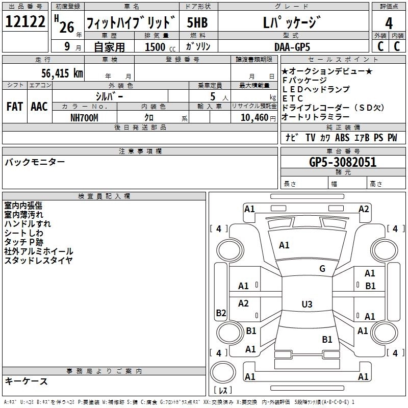 HONDA FIT HYBRID 2014 г., лот № 12122