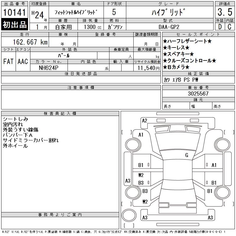 HONDA FIT SHUTTLE HYBRID 2012 г., лот № 10141