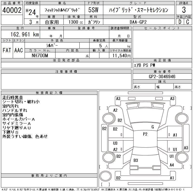 Год выпуска2012 Пробег 163 000 км КузовGP2 Комплектация HYBRID * SMART SELECTION