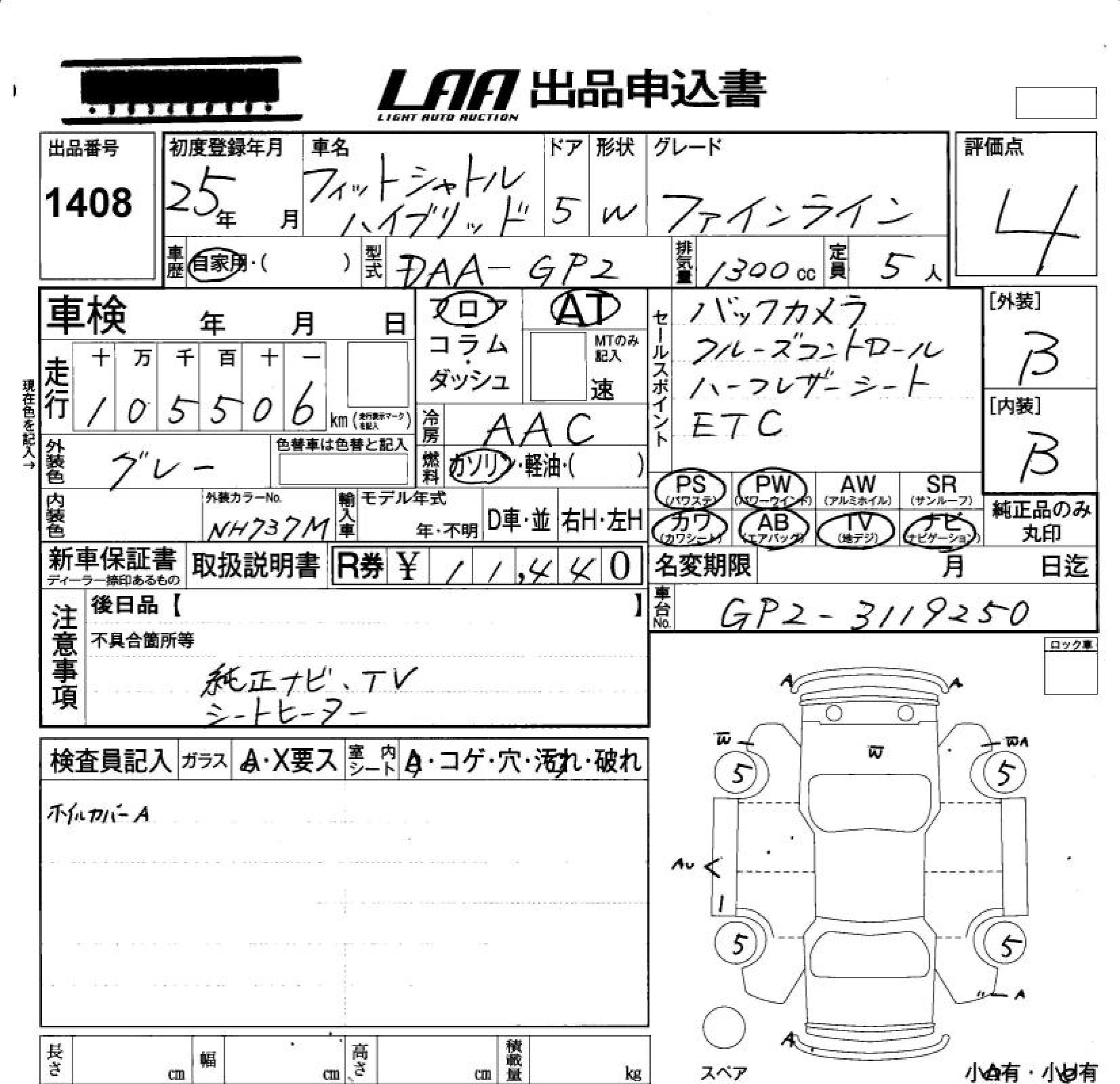 HONDA FIT SHUTTLE HYBRID 2013 г., лот № 1408