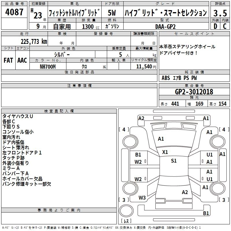 HONDA FIT SHUTTLE HYBRID 2011 г., лот № 4087
