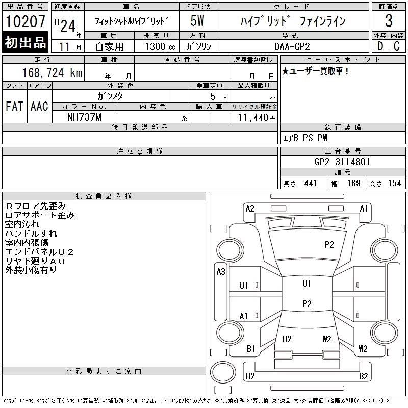 HONDA FIT SHUTTLE HYBRID 2012 г., лот № 10207