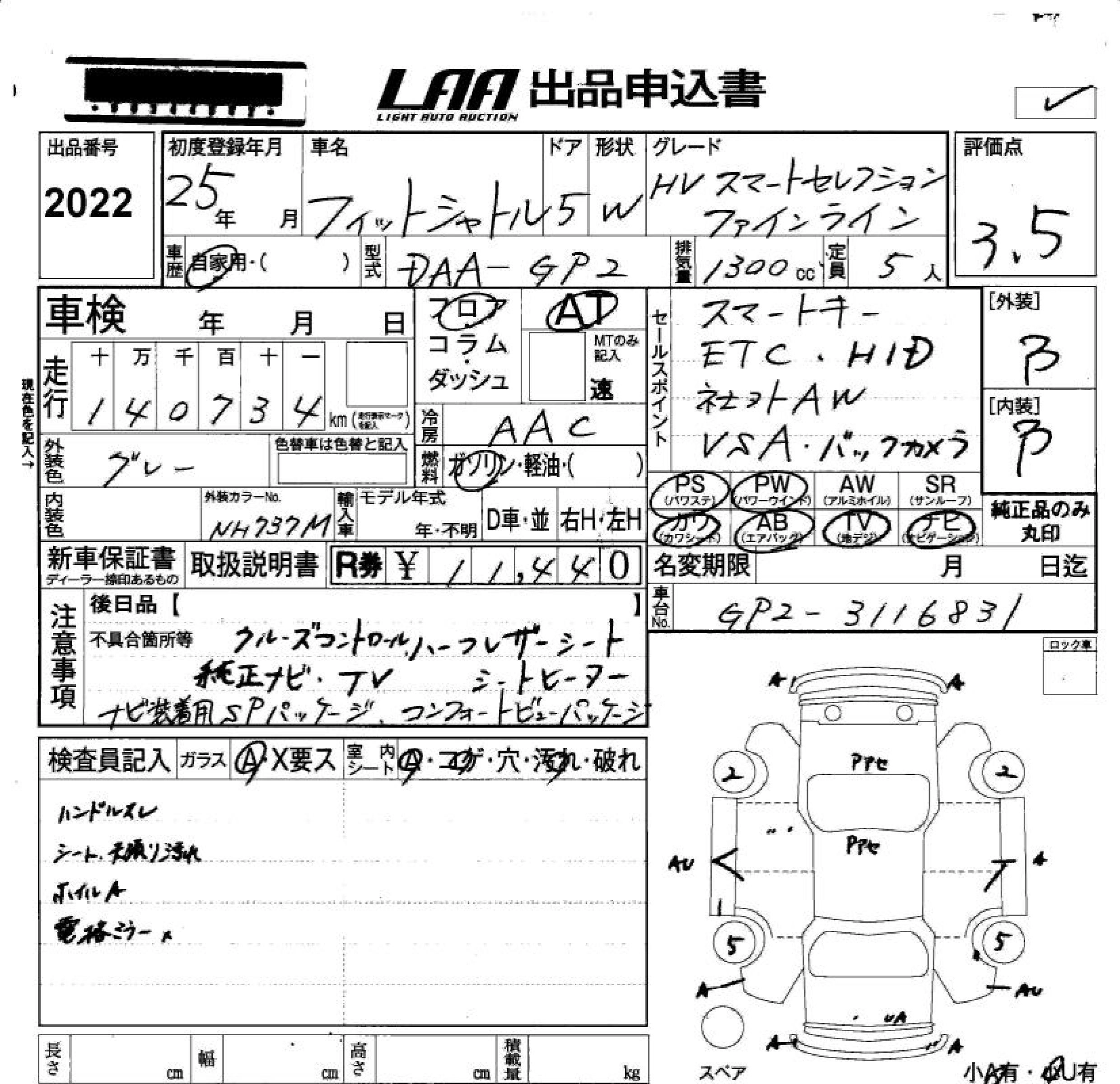 HONDA FIT SHUTTLE HYBRID 2013 г., лот № 2022