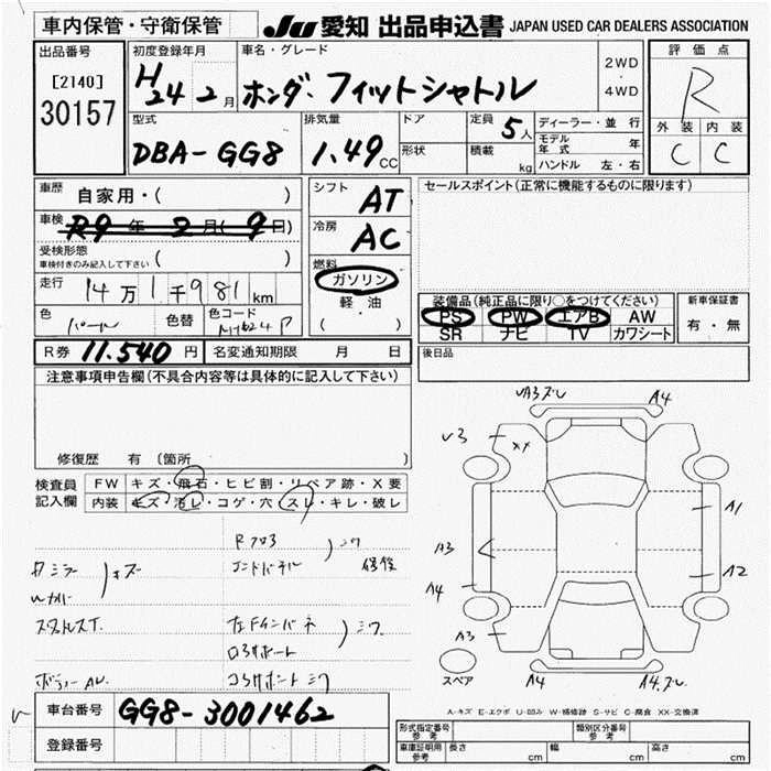 HONDA FIT SHUTTLE 2012 г., лот № 30157