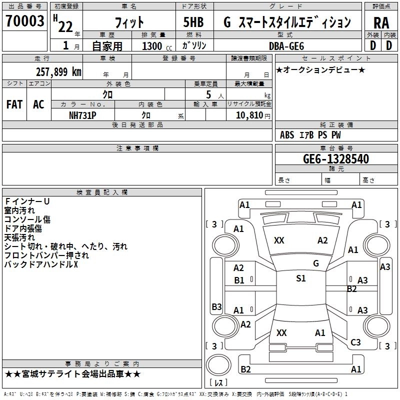 HONDA FIT 2010 г., лот № 70003