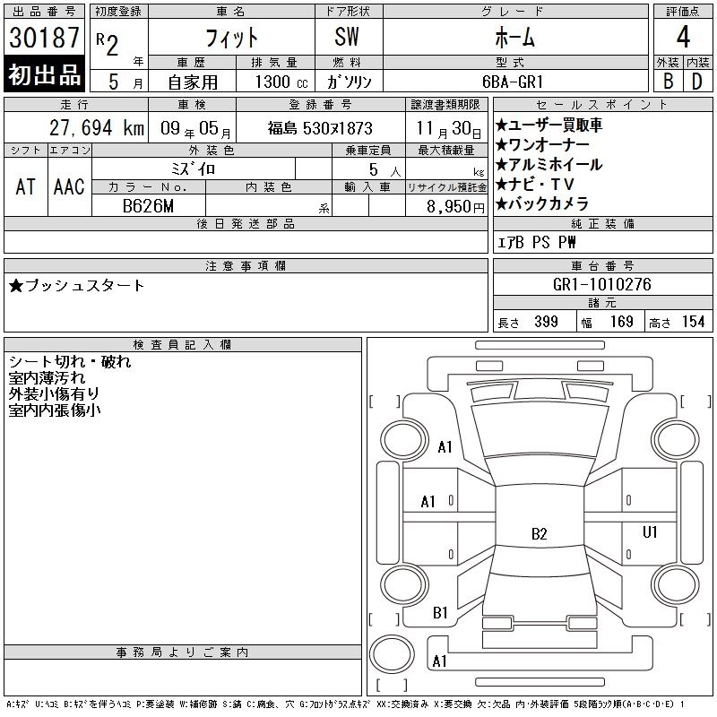 HONDA FIT 2020 г., лот № 30187