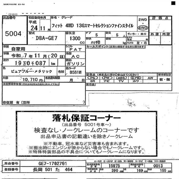Статус выставлен на аукцион Лот 5004 Аукцион JU Nagano Дата аукциона 04.11.2025