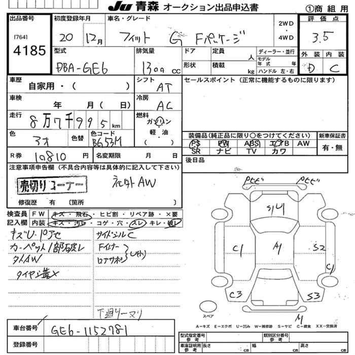 Статус выставлен на аукцион Лот 4185 Аукцион JU Aomori Дата аукциона 04.11.2025