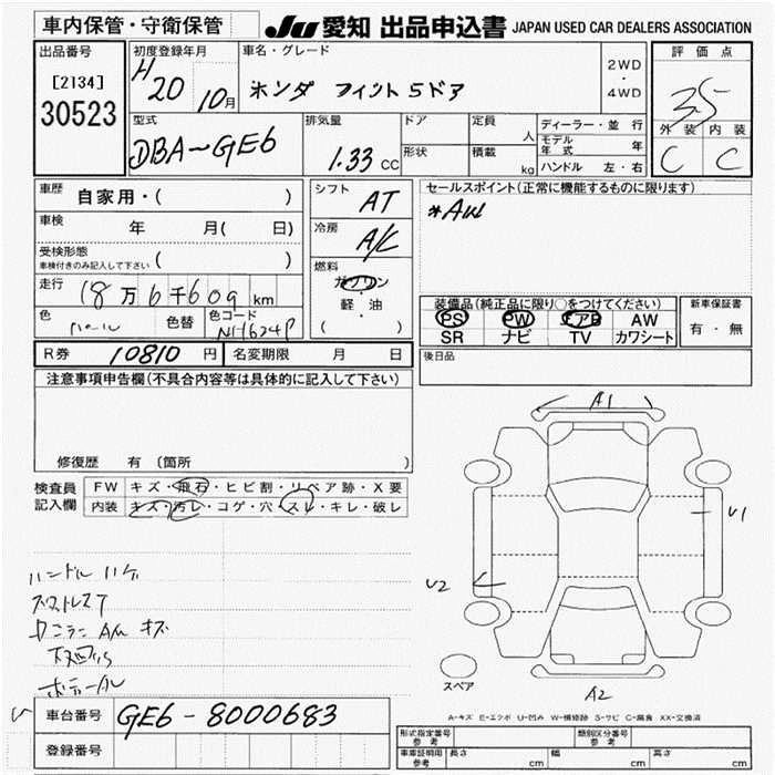 HONDA FIT 2008 г., лот № 30523