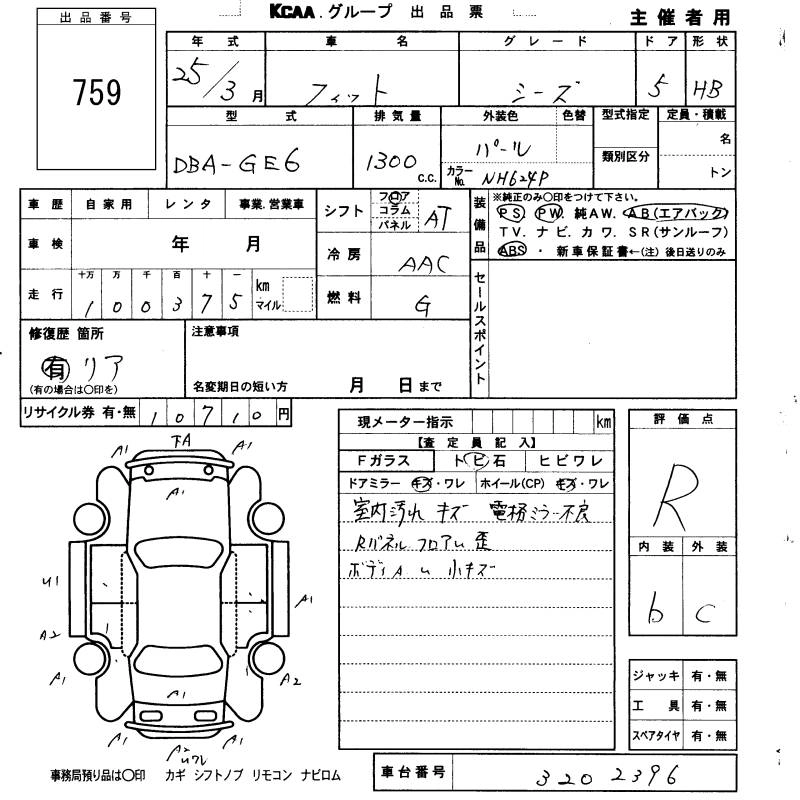 HONDA FIT 2013 г., лот № 759