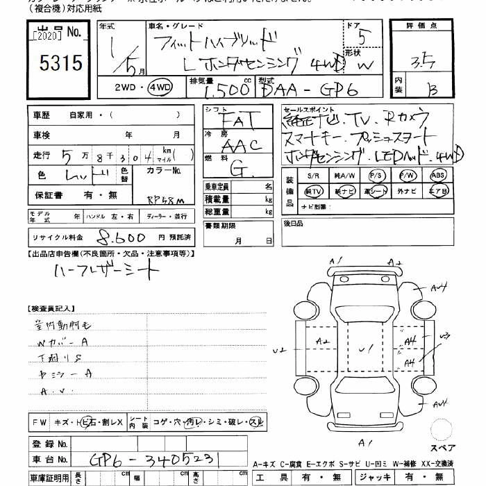 Год выпуска2019 Пробег 58 000 км КузовGP6 Комплектация4WD HYBRID L HONDA SENSING