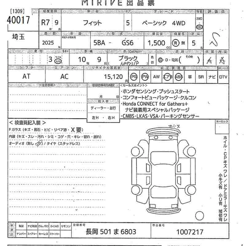 Статус выставлен на аукцион Лот 40017 Аукцион MIRIVE Saitama Дата аукциона 10.12.2025