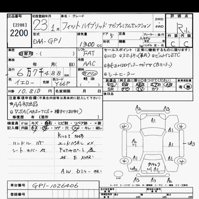 HONDA FIT 2011 г., лот № 2200