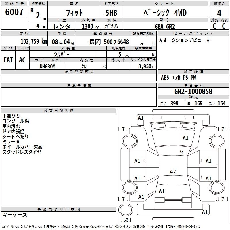 Стартовая цена авто на аукционе 1 000 ¥