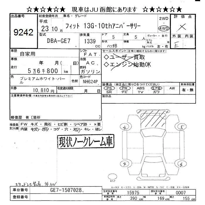 Статус не продан Лот 9242 Аукцион JU Hokkaido Дата аукциона 23.01.2026