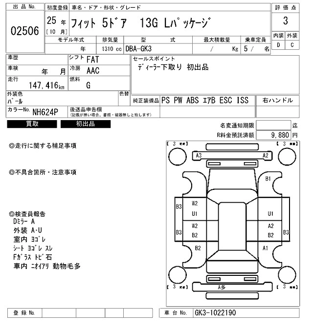 Статус продан Лот 2506 Аукцион ARAI Bayside Дата аукциона 23.01.2026