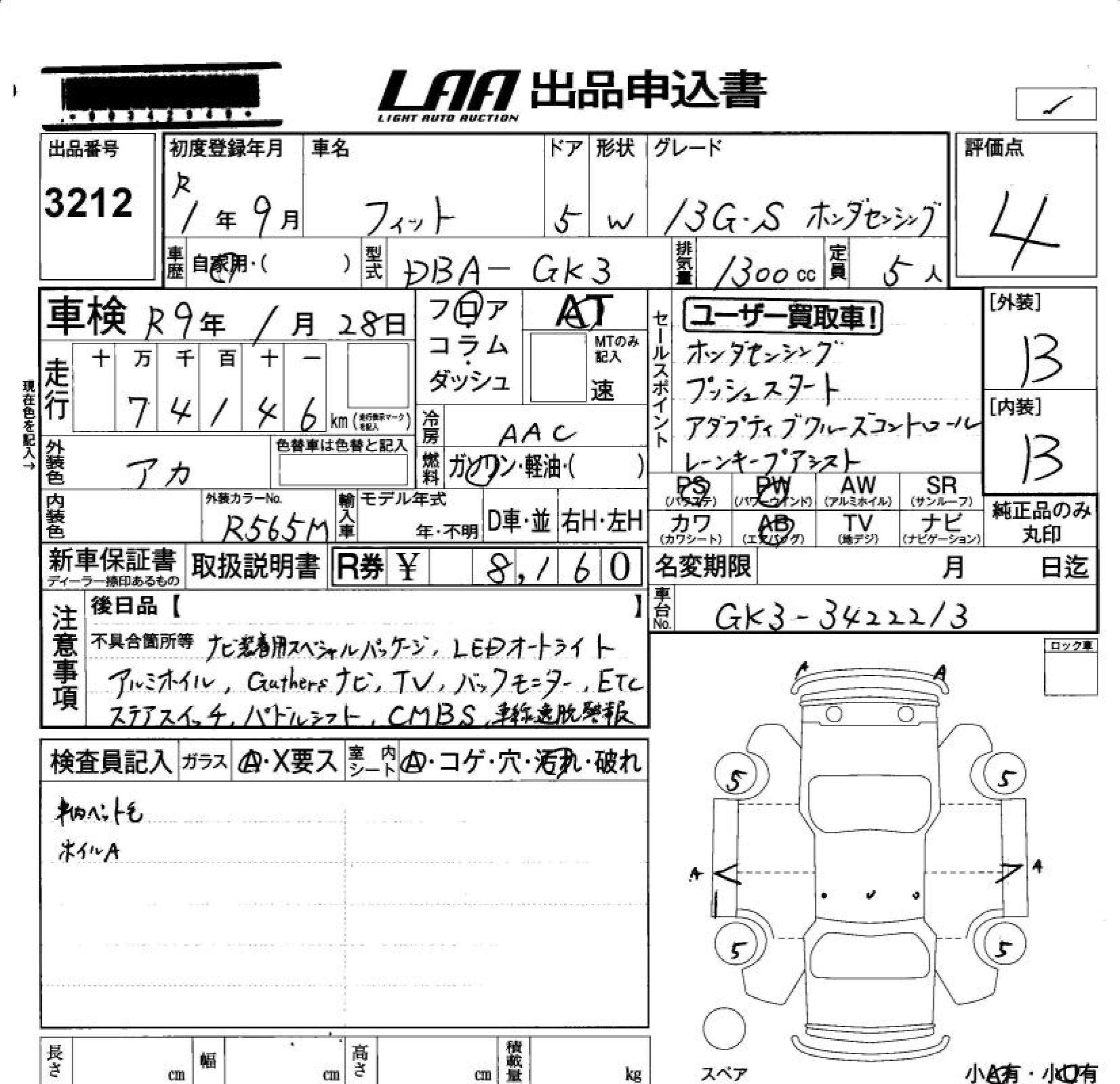 Статус продан Лот 3212 Аукцион LAA Okayama Дата аукциона 23.01.2026