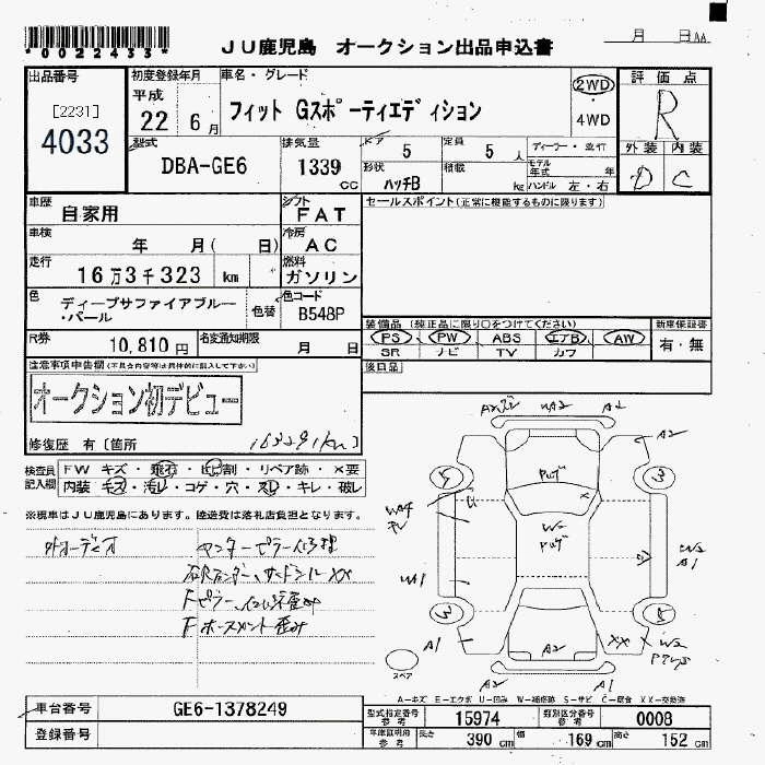 HONDA FIT 2010 г., лот № 4033