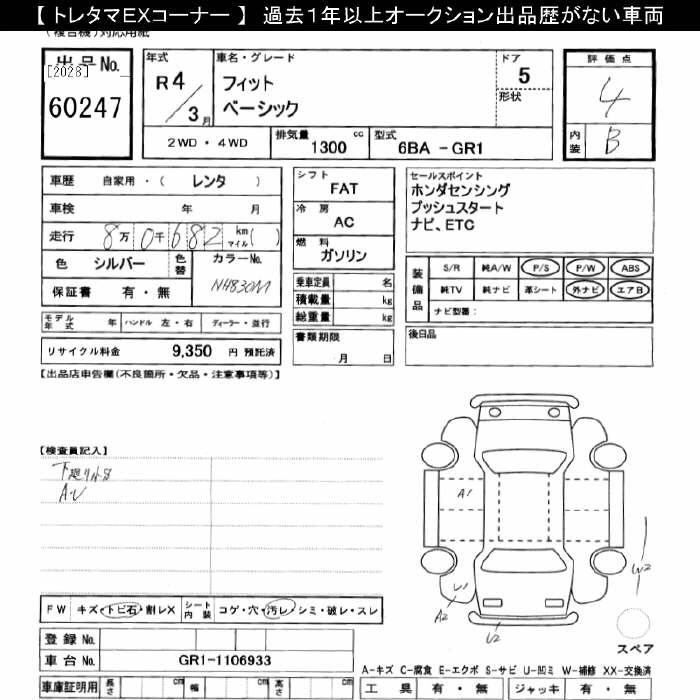HONDA FIT 2022 г., лот № 60247