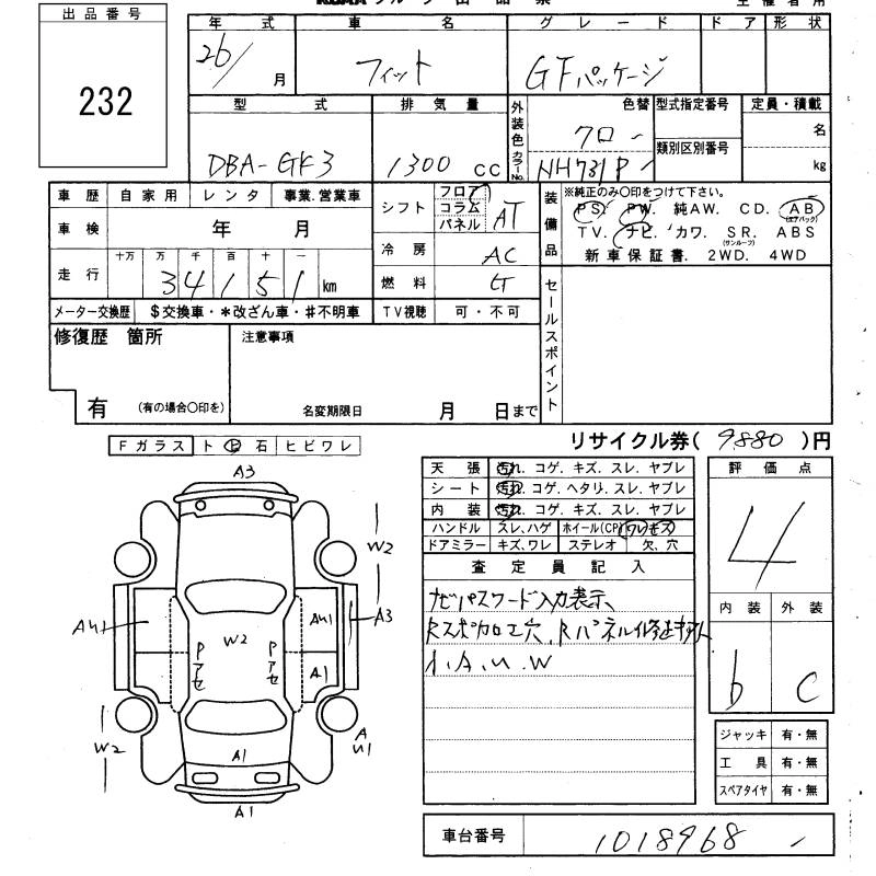 HONDA FIT 2014 г., лот № 232