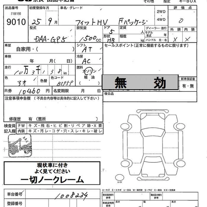 HONDA FIT 2013 г., лот № 9010