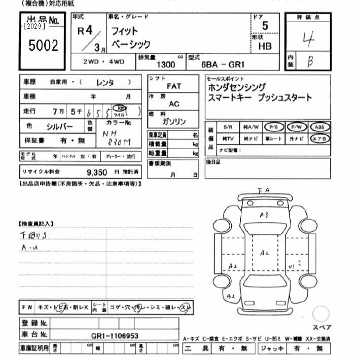 HONDA FIT 2022 г., лот № 5002