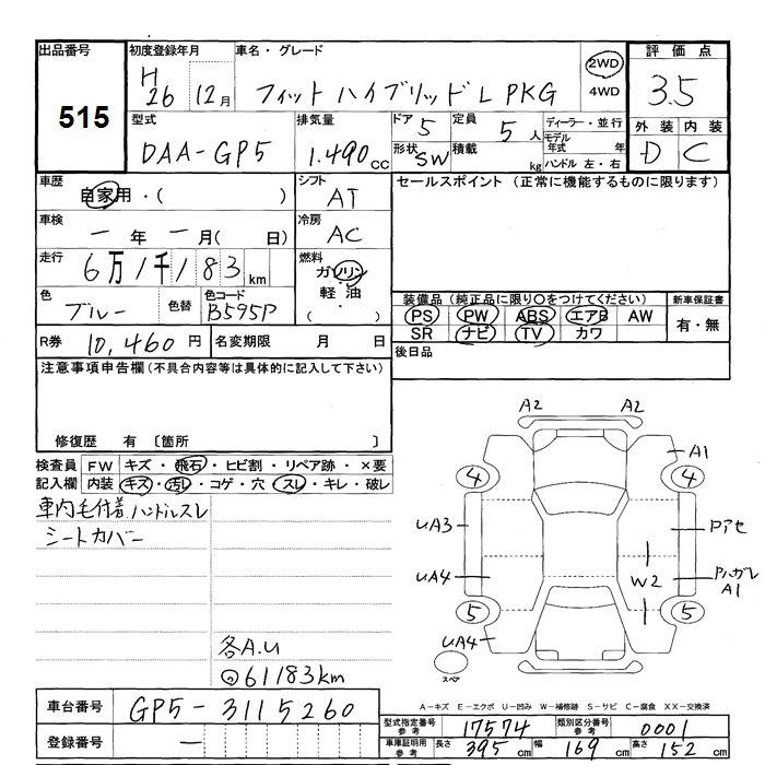 HONDA FIT 2014 г., лот № 515