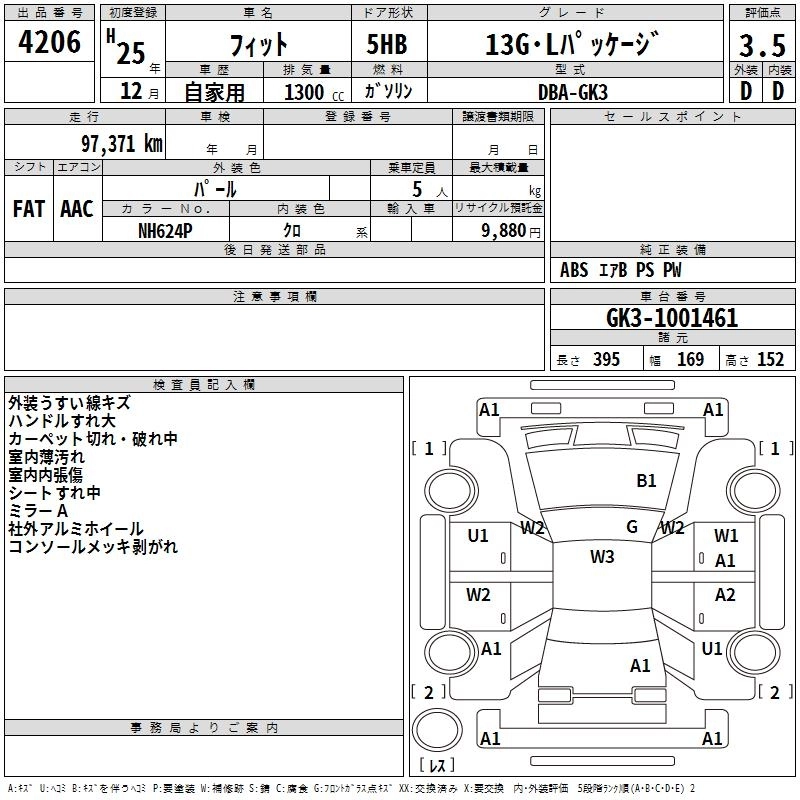 Год выпуска2013 Пробег 97 000 км КузовGK3 Комплектация13G*L PACKAGE