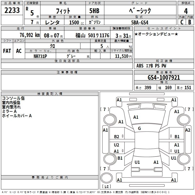 Статус выставлен на аукцион Лот 2233 Аукцион TAA Hiroshima Дата аукциона 10.03.2026