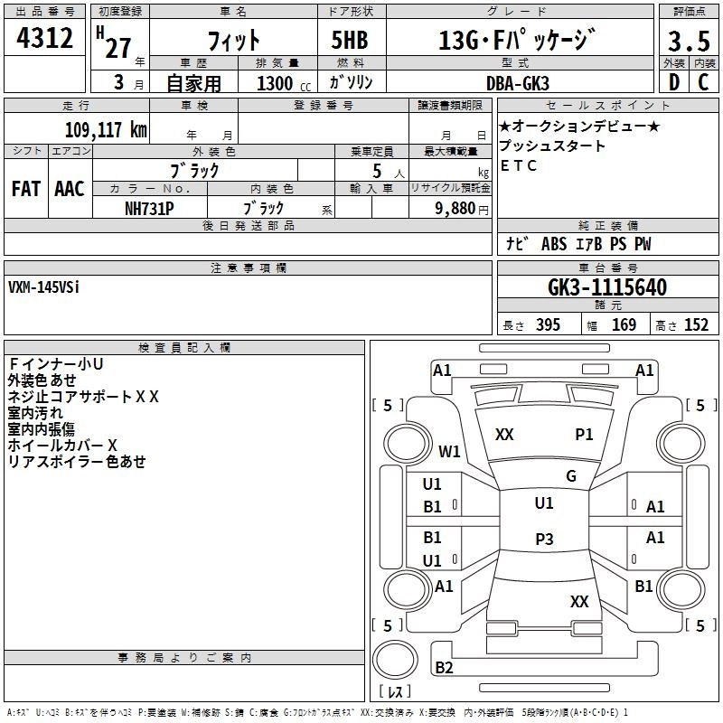 HONDA FIT 2015 г., лот № 4312