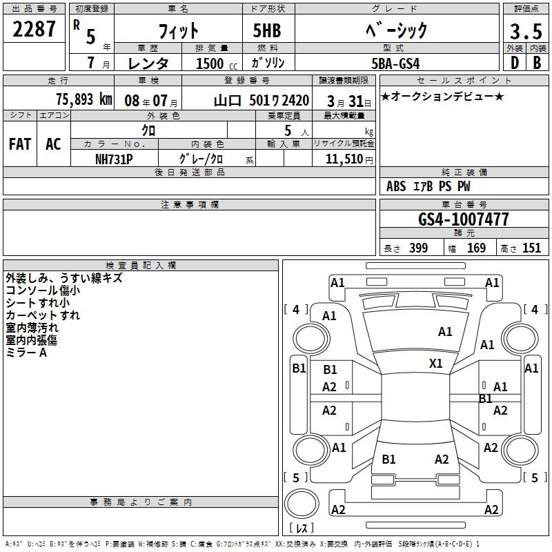 Статус выставлен на аукцион Лот 2287 Аукцион TAA Hiroshima Дата аукциона 10.03.2026