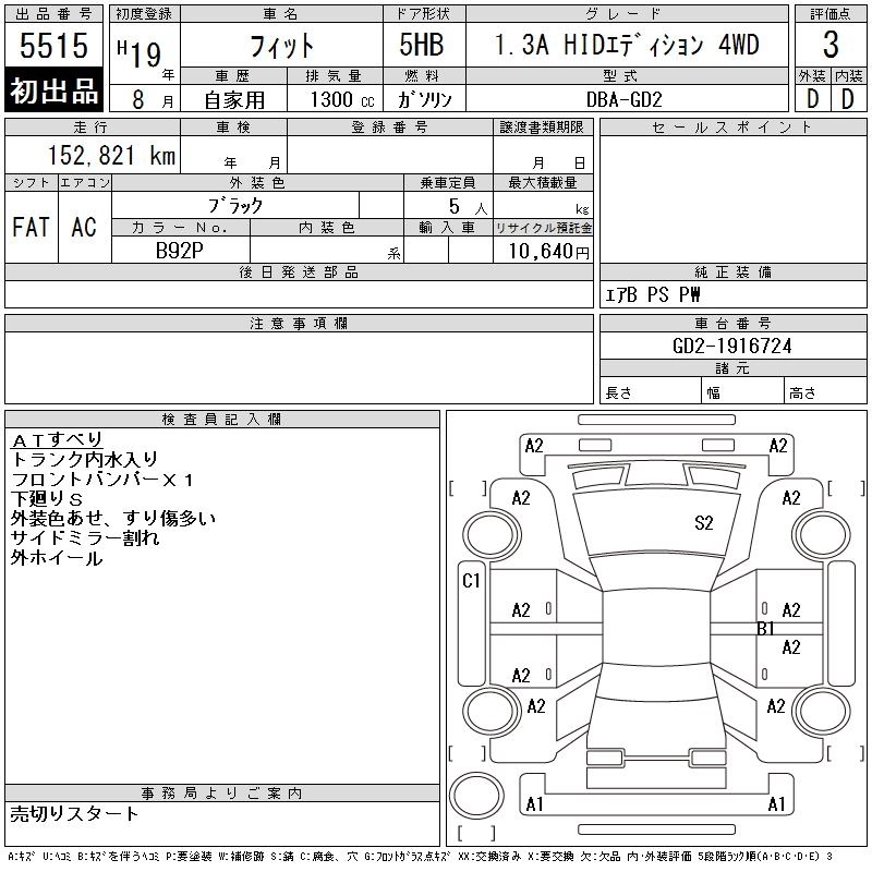 Год выпуска2007 Пробег 153 000 км КузовGD2 Комплектация1.3A HID EDITION 4WD
