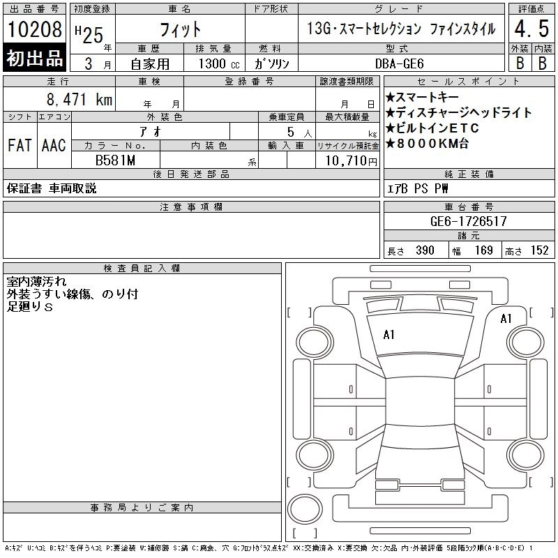 HONDA FIT 2013 г., лот № 10208