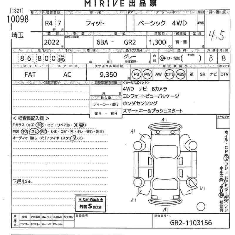 Статус выставлен на аукцион Лот 10098 Аукцион MIRIVE Saitama Дата аукциона 11.03.2026