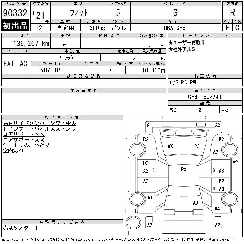 Статус выставлен на аукцион Лот 90332 Аукцион CAA Chubu Дата аукциона 11.03.2026