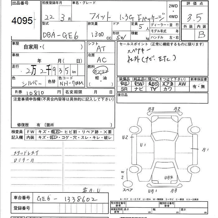 HONDA FIT 2010 г., лот № 4095