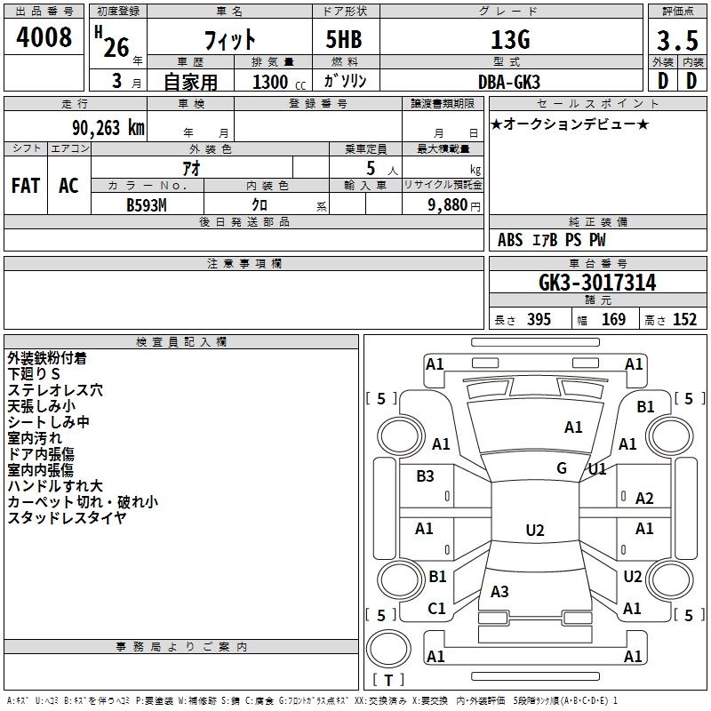 HONDA FIT 2014 г., лот № 4008