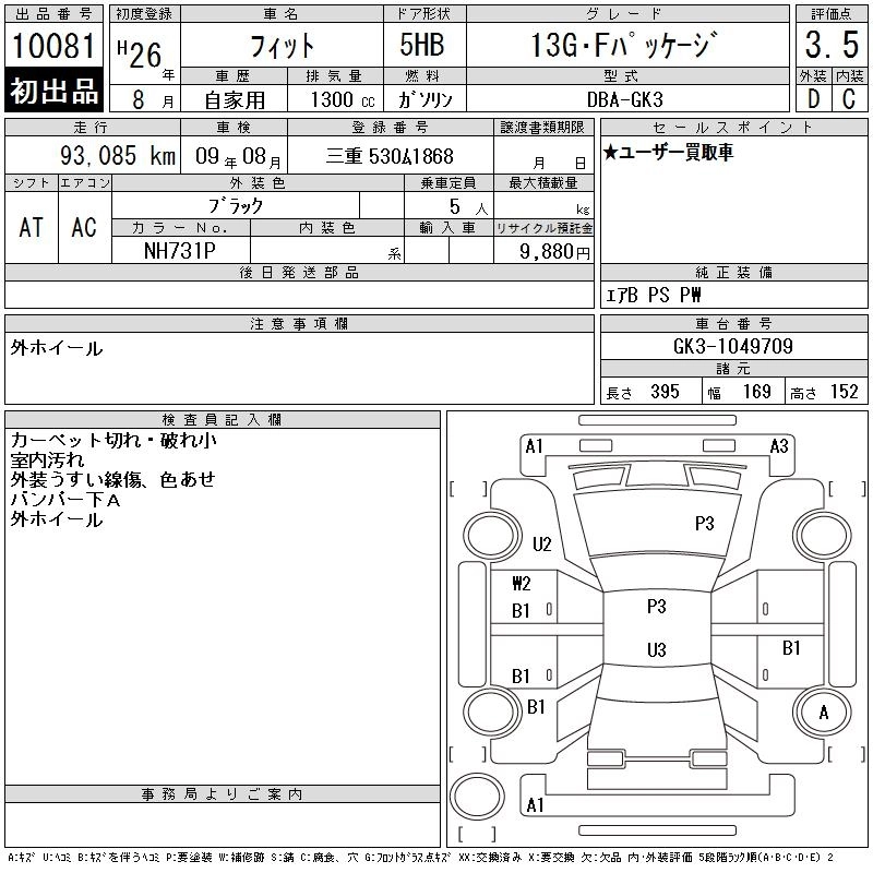 Статус выставлен на аукцион Лот 10081 Аукцион CAA Chubu Дата аукциона 11.03.2026