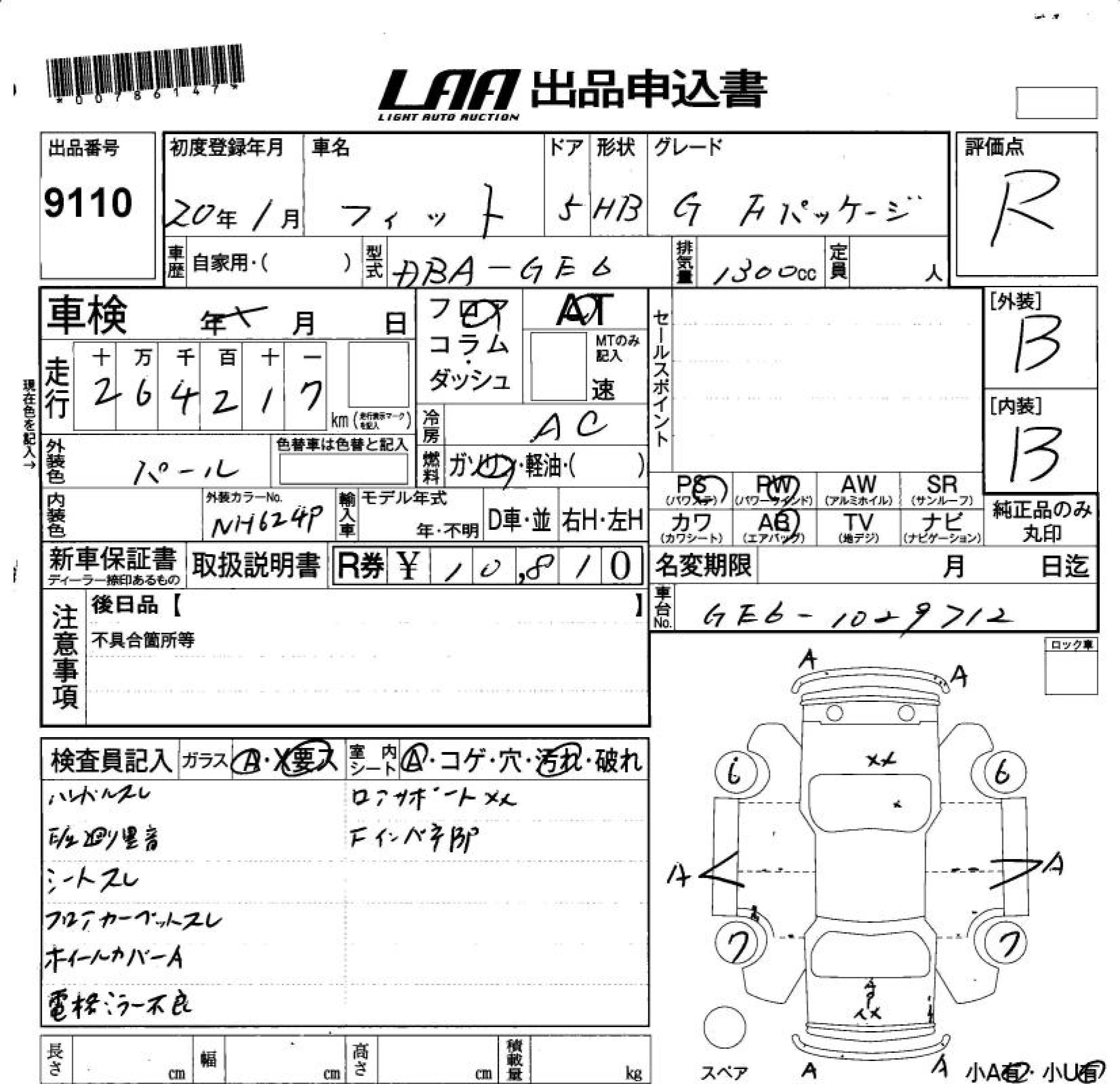 Статус выставлен на аукцион Лот 9110 Аукцион LAA Okayama Дата аукциона 13.03.2026