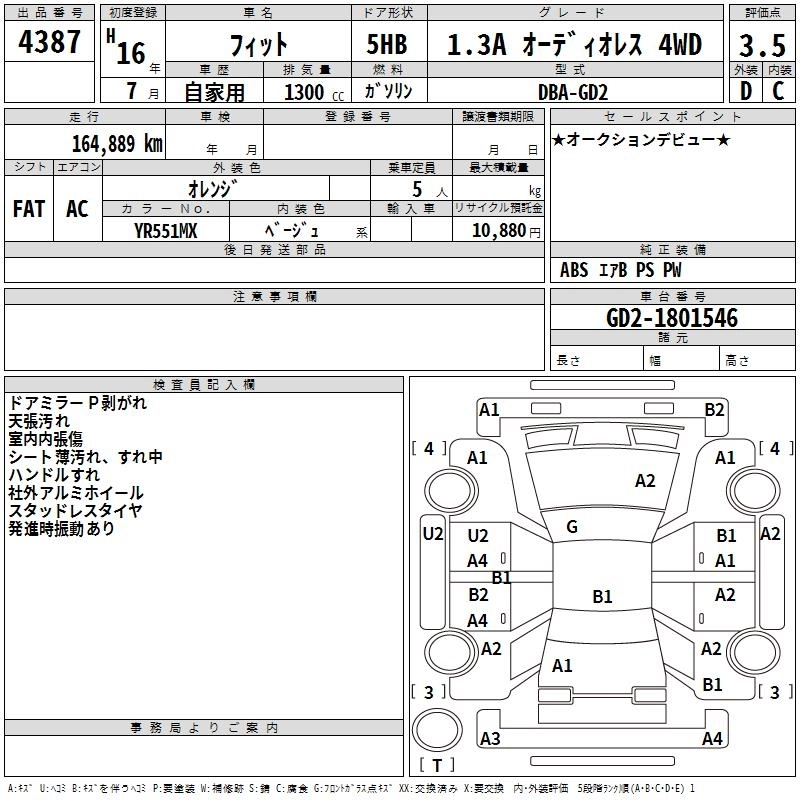 HONDA FIT 2004 г., лот № 4387