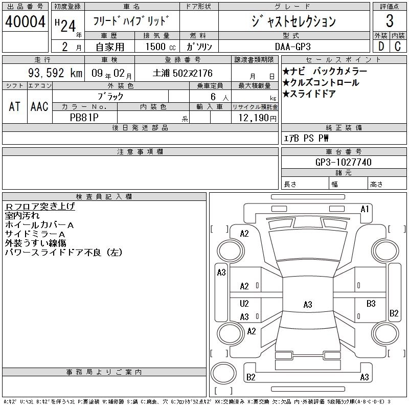 HONDA FREED HYBRID 2012 г., лот № 40004