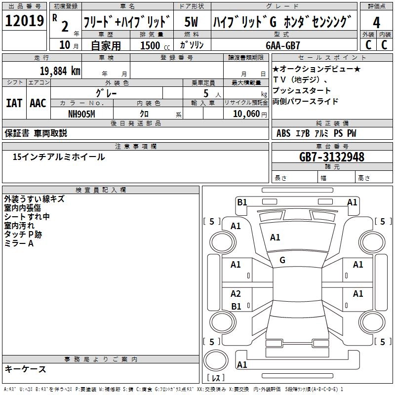 HONDA FREED + HYBRID 2020 г., лот № 12019
